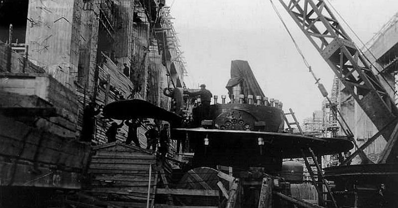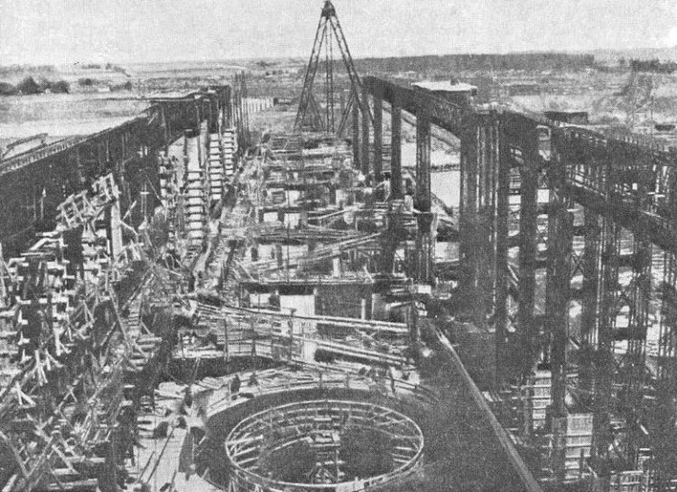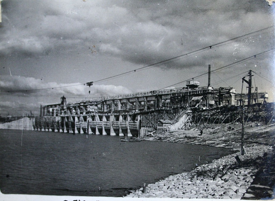 Строительство Рыбинской ГЭС в Ярославской области было начато в 1935 году. 24 июня 1940 года была перекрыта Волга, а 24 октября того же года – Шексна, пропуск воды производился через водосбросную плотину. Наполнение Рыбинского водохранилища началось 13 апреля 1941 года, а 17 мая была сдана в эксплуатацию первая нитка шлюза. К началу войны здание ГЭС не было доведено до крыши, велись работы по монтажу первых двух гидроагрегатов.